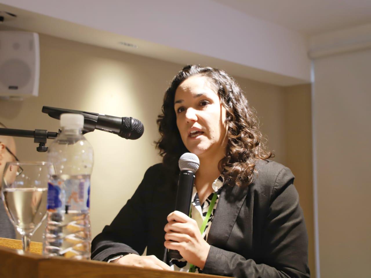 La especialista comenzó la charla haciendo énfasis sobre como el cambio climático nos esta afectando a todos y por tal razón insistió en que debe estar en la agenda,debido a que se entrecruza con otros temas referentes al sustento económico y el desarrollo de las poblaciones. En ese marco es recalcó que es importante la transición energética y compartió la visión que tiene el gobierno de Reino Unido al respecto.