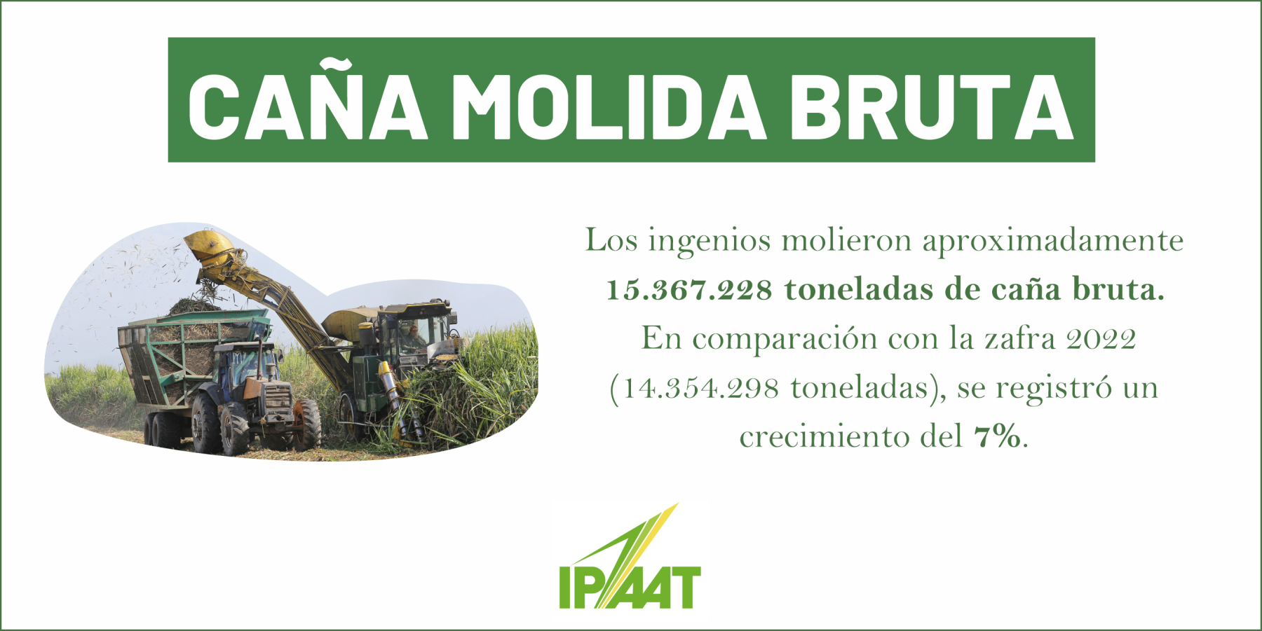Los ingenios molieron hasta hoy aproximadamente 15.367.228 toneladas de caña bruta, en comparación con la zafra 2022 se molió un 7,6 % más de caña bruta, siendo 1.012.930 toneladas de diferencia.