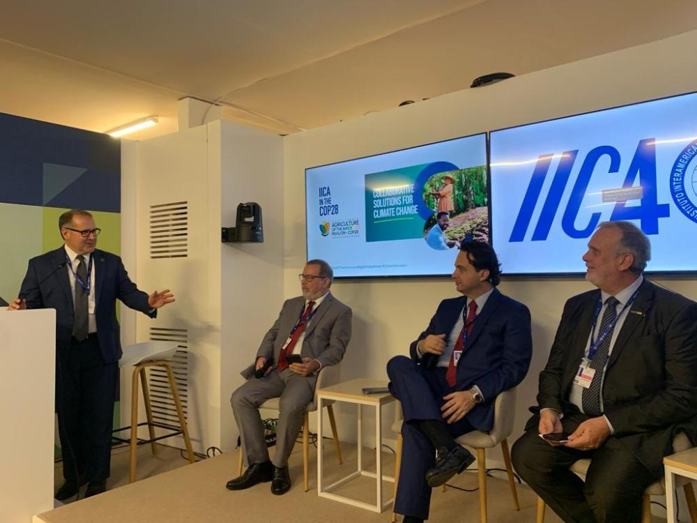El tema fue debatido durante un panel que tuvo lugar en la Casa de la Agricultura Sostenible de las Américas, el pabellón que el Instituto Interamericano de Cooperación para la Agricultura (IICA) instaló junto a sus Estados Miembro y en la Conferencia de las Naciones Unidas sobre Cambio Climático, que este año se desarrolla en la ciudad de Dubái con la presencia de más de 70.000 asistentes, entre líderes políticos y climáticos mundiales, representantes del sector privado, ONGs y organizaciones sociales y de jóvenes.