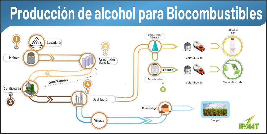 La producción de alcohol anhidro a partir de melaza de caña de azúcar (biocombustibles) es un proceso que combina química y biología, y consta de las siguientes etapas principales: fermentación, destilación y deshidratación.