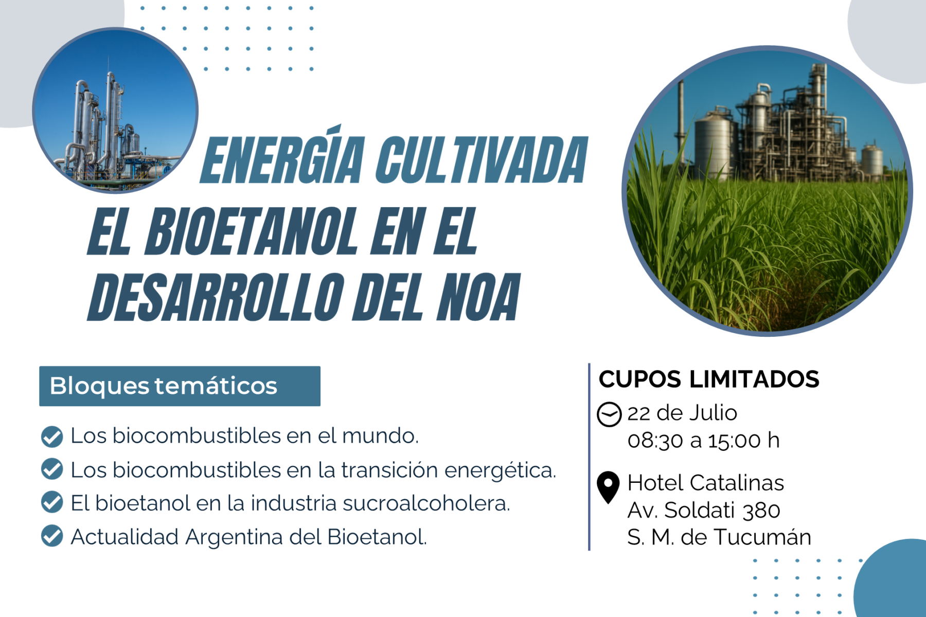 Este encuentro no solo busca debatir desafíos, sino también proyectar el bioetanol como una oportunidad para el desarrollo regional, posicionando al NOA como referente nacional e internacional en energías limpias.
