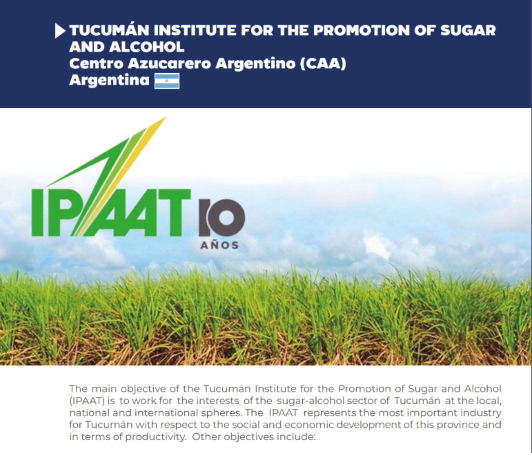 “El objetivo principal del Instituto de Promoción del Azúcar y el Alcohol de Tucumán (IPAAT) es trabajar por los intereses del sector sucroalcoholero de Tucumán en los ámbitos local, nacional e internacional. El IPAAT representa la industria más importante para Tucumán con respecto al desarrollo social y económico de esta provincia y en términos de productividad.
