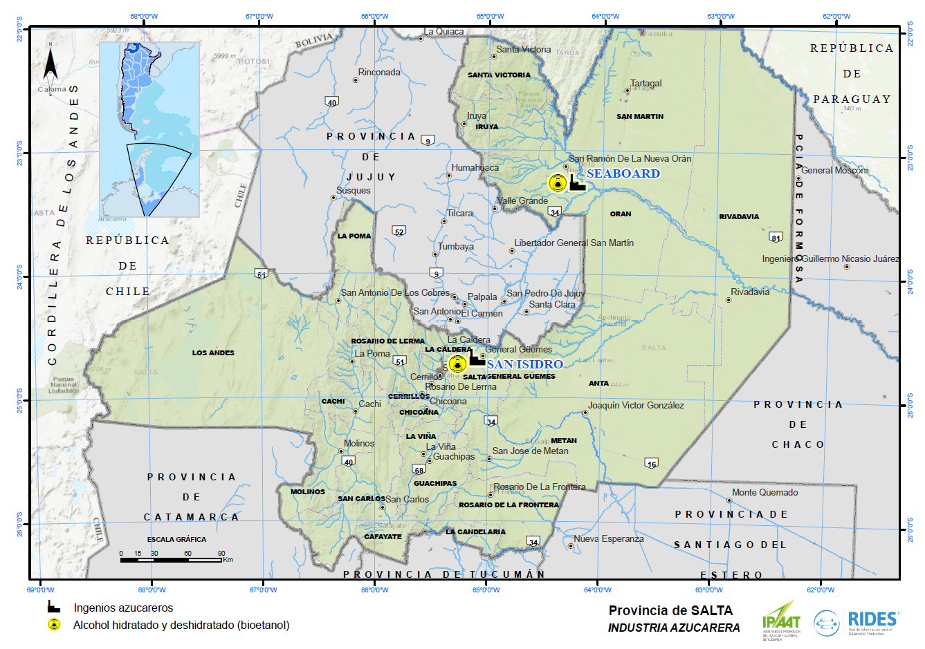 El Instituto de Promoción del Azúcar y Alcohol de Tucumán (IPAAT), en colaboración con la Red de Información para el Desarrollo Productivo (RIDES) perteneciente a la Secretaria de Estado de Producción, realizaron una nueva serie de mapas que describen detalladamente los ingenios sucroalcoholeros.